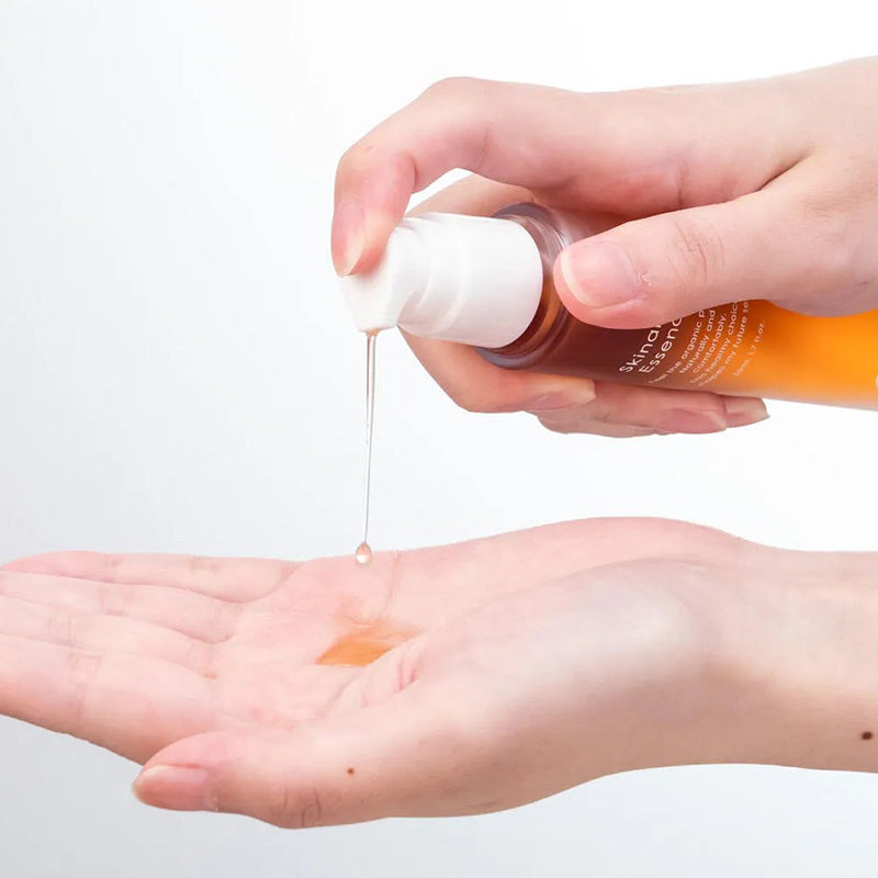 洗顔後、スキナブルエッセンスを2プッシュ分手に取ります。